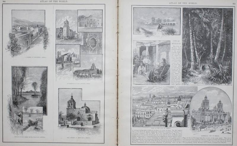 Folio 36x28 cm, gilt decorative embossed cloth-covered boards worn, binding partly broken but holding firm enough. 192 pages full of information with more than 120 full page and double page colour maps (many of the USA), colour plates, black and white engravings and colour diagrams. What made Rand McNally unique at the time, and gave them an important advantage in the map publishing business, was that instead of using steel or copper engraving techniques, they adopted a wax engraving method called relief line engraving.